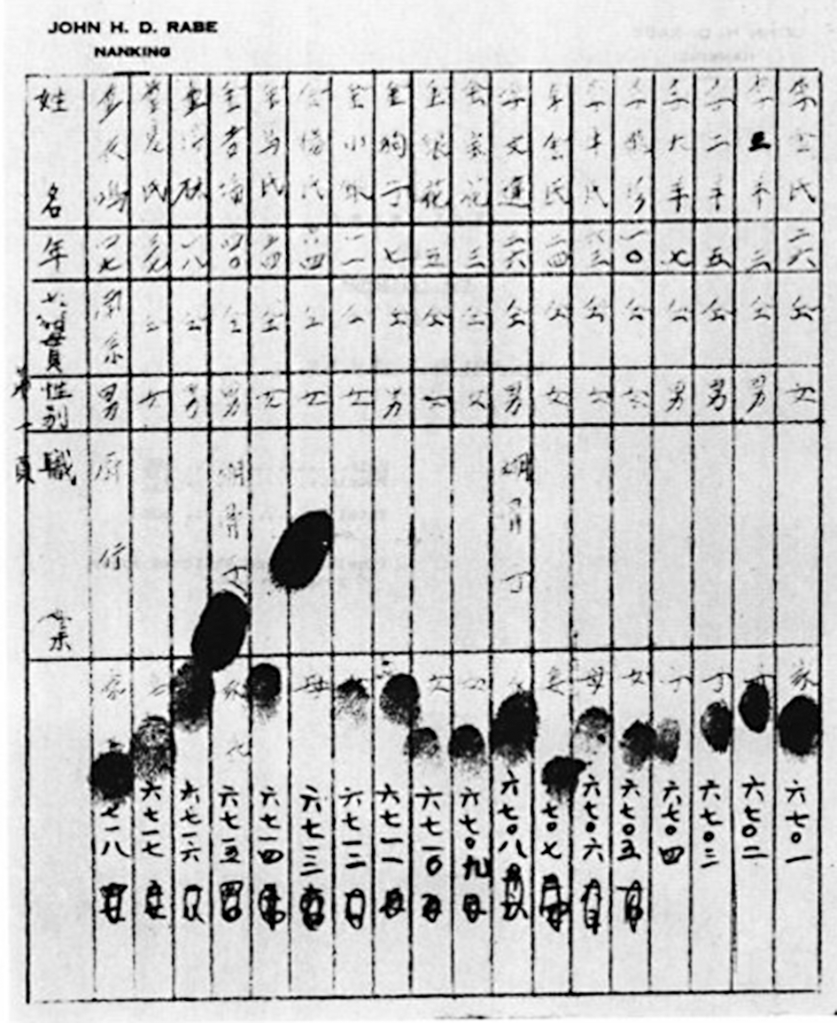 “走访约翰·拉贝曾任职的德国企业后,德方给我寄来了一份拉贝在南京小粉桥难民所登记的难民信息表,里面包含了600多名难民的年龄、性别、职业以及他们的签名,对研究难民构成情况意义重大。”张连红说。